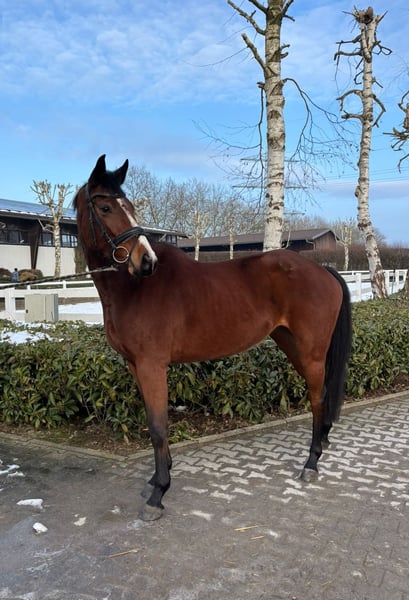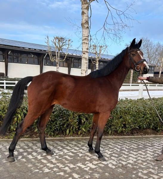 For sale is this 4-year-old mare by Balou du Rouet out of Casall x Lancer II. The mare has already been backed and is currently taking a short break with turnout and lunging. She is approximately 16.1 hh. Good movement and excellent free jumping. Thanks to her outstanding pedigree, she is also interesting for breeding purposes. Available for a phone call from 5:00 PM at 0176 267 499 69.