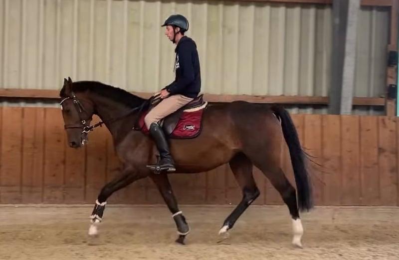 Race : Holsteiner Sexe : Jument Année de naissance : 2022 Radiographies : Sans anomalie Taille : 1,67 m 🧬 S. Fille d'Armstrong (Arezzo VDL-Cantos) M. Davana Holst. Cannavaros-Chanou3 (Cassal-Lord) 🧬 Travaille selon son âge, montable. Une fille exceptionnelle à la recherche d’un nouveau foyer. Un projet idéal pour un amateur ambitieux ou un cavalier sportif. Saut léger et techniquement précis, allures de bonne qualité. Pas peureuse, en bonne santé, aucune mauvaise habitude en box. Dotée d’un super caractère, apprend vite. Plus d’informations en message privé si intéressé.