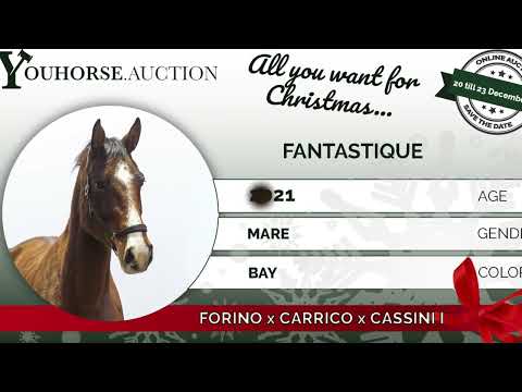 Fantastique is a beautiful, large-framed mare with an exceptionally good canter. She jumps with lightness, scope and quick reflexes. She moves freely and elastically through her body, combining her size with athletic ability. Being still young, she offers plenty of room for further development, making her an exciting sporthorse for the future. Her sire Forino, the young For Pleasure son already competing at 1.45m, is proving to be not only talented in sport but also an interesting producer. The damline is equally strong, having produced several 1.45m horses and licensed stallions such as Chinchero and Camerino VA. It is a proven performance family with value for both sport and breeding. Fantastique comes from one of the largest and most reputable sporthorse breeders in Germany. She is completely unbroken and knows no more than a halter. Having spent her life in the field so far, she has had the time to grow correctly and develop strength in her body and legs. An honest and pure mare ready to start her training. With her type, scope and strong pedigree, Fantastique offers significant potential — both as a sporthorse and as a future broodmare.