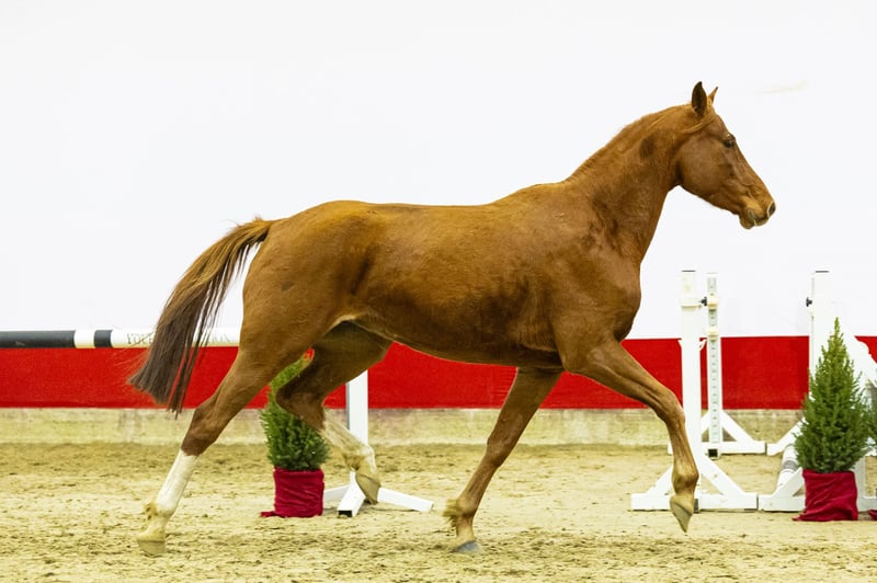Excellent is a six-year-old mare with a modern build and a light, athletic jump. She jumps consistently: careful, athletic and with good technique. Her correct jump, balance and body use make her easy to ride and ideal for further development towards sport. With Emerald van ’t Ruytershoff as her sire and Quintago as her dam’s sire, Excellent has a very strong pedigree foundation. Emerald is now recognised worldwide as a producer of modern, reliable jumpers with scope and attitude. Her granddam Ciebura VA has already produced several sporthorses, including the 1.45m jumper Camo. This mare line is also notable for tracing back to the famous mare Stella, a foundation mare known for producing numerous high-level showjumpers. Excellent already shows natural quality and still has plenty of room for further development. A promising sport mare with a strong pedigree and potential — both for sport and for future breeding.