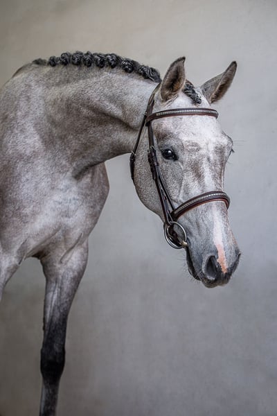 She is a very sensitive, refined mare and somewhat environmentally cautious – therefore not suitable for beginners. Currently, her riding education is still in the early stages, as her muscles and balance need to be developed further after the foal period. Those who give her the necessary time will have a horse with significant potential for development.