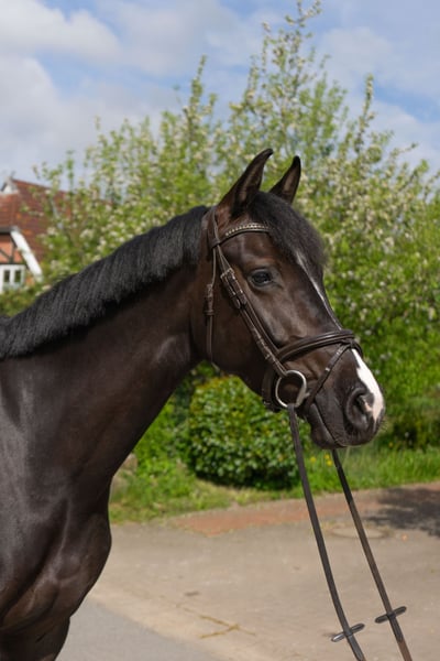 Zum Verkauf steht diese elegante Holsteiner-Stute aus unserer Familienzucht. Die wunderschöne Noëlle wurde 2020 bei uns geboren und schonend altersgerecht ausgebildet. Sie bringt viel Potenzial mit, hat eine hervorragende Springmanier - also eine typische Casall-Tochter. Die Stute zeigt sich im Springen äußerst talentiert, ist aufmerksam und ehrlich. Sie ist sehr rittig und klar im Kopf. Turniermäßig konnte Noëlle sich im letzten Jahr mehrfach in Springpferdeprüfungen Kl. A und A** platzieren. In diesem Jahr konnte sie bereits eine Springpferde-L (110cm) und eine Springpferde-M-Platzierung (120cm) sammeln. Auch Ausritte sind kein Problem. Mit anderen Pferden ist sie gut verträglich. Noëlle ist ein echtes Schmuckstück für ambitionierte Reiter, die ein zuverlässiges und talentiertes Springpferd suchen. Sie ist gesund, geimpft und regelmäßig entwurmt. Röntgenbilder wurden 3-jährig erstellt und können geschickt werden. Sie sind ohne Befund. Melden Sie sich gerne, wenn Sie weitere Fragen haben oder ein Probereiten vereinbaren möchten.