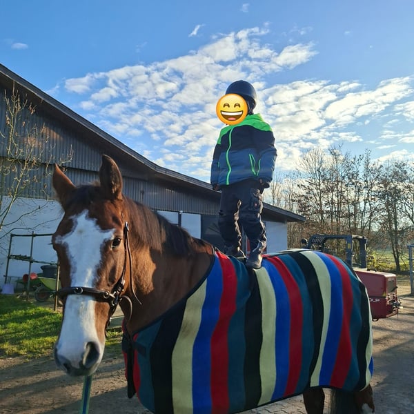 Con gran pesar, hemos decidido vender nuestra yegua Holsteiner de 6 años. Es un caballo en el que se puede confiar plenamente y que siempre quiere agradar. A los 4 y 5 años, ya participó varias veces en concursos, obteniendo calificaciones de hasta 8,0. Debido a su excelente carácter, seguramente también será un gran caballo para jinetes jóvenes. Deseamos para ella un hogar maravilloso donde sea vista como una amiga y no solo como una herramienta. Por ello, solo se venderá a particulares y no a comerciantes.
