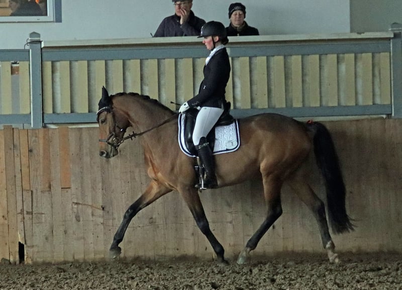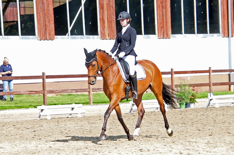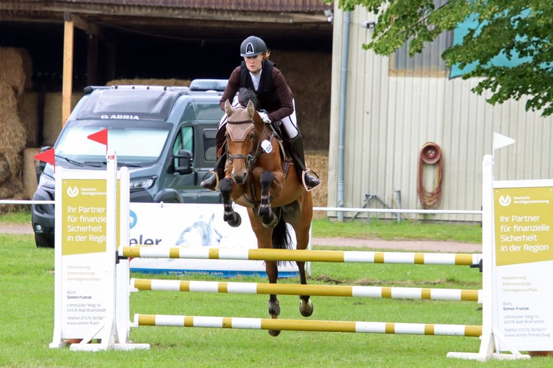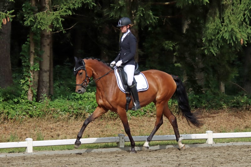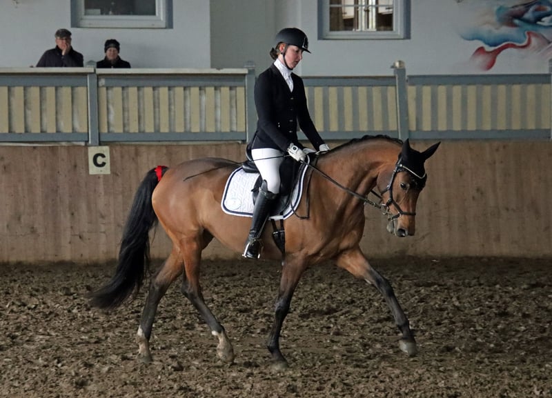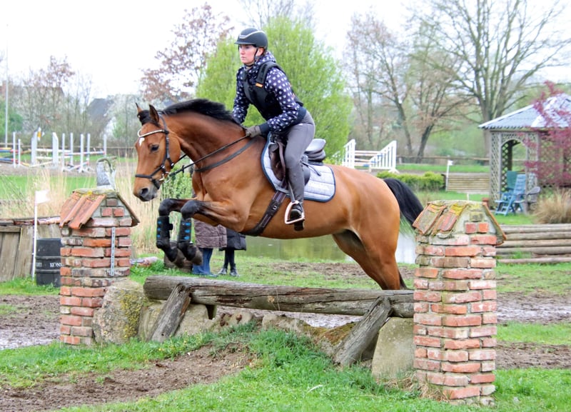 Angeboten wird eine wunderschöne Holsteiner Stute mit Turniererfahrung und Erfolgen in Dressur und Springen. In Springen und Dressur erfolgreich bis Kl. L vorgestellt. In beiden Sparten mit Potential für mehr. A+L Springen siegreich A Dressur siegreich, L Dressur mehrfach platziert. M-Lektionen in Arbeit. Über Geländehindernisse konnte sie im Training bereits erste Erfahrungen sammeln und ist hier sehr sicher unterwegs. Auf jeden Fall ein Pferd das auch in der Vielseitigkeit ihre Schleifen sammeln könnte. Sehr brav im Umgang und gliedert sich sehr unkompliziert in neue Herden ein (kennt sowohl reine Stutenherde als auch gemischt) Sie fährt zuverlässig Anhänger und kennt auch Transporter. Ausreiten auch an viel befahrenen Straßen kein Problem. Die Stute ist im Auftrag des Züchters und Besitzers zu verkaufen. Ein älterer Röntgentüv liegt vor.