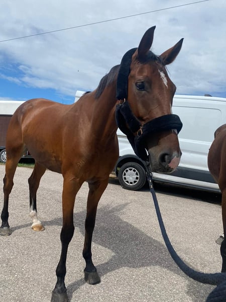 "Quick Lady" is an elegant mare approximately 1.70 meters tall. "Quibsy," despite her young age, is exceptionally well-behaved and fearless, making her suitable even for less experienced riders. In jumping, she prefers a rider who enjoys going forward, as her name suggests. She is endowed with great scope, caution, and awareness. Additionally, she is quick in the course and flexible in turns. When she feels comfortable and secure with her rider, she forgives mistakes and performs generously. She is also well-behaved and uncomplicated outside of training and at competitions. In handling, she is a real sweetheart, friendly towards other horses, and loves being petted. Completely shoe- and loading-trainable. Currently, she is suitable for competitions up to 115 cm, but she has the potential for much more.