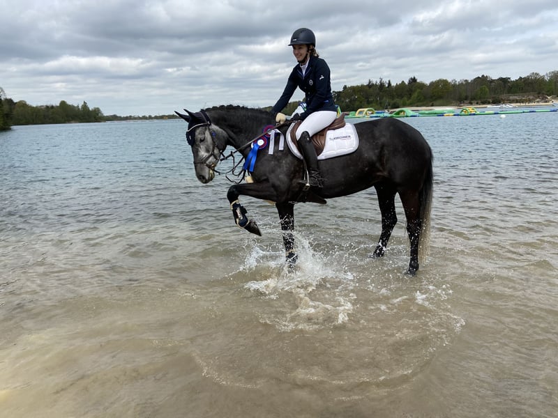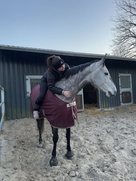 With a heavy heart, I am offering my beautiful 9-year-old Holsteiner mare (1.61 m) for sale. She is sired by Dio Cabrio x Clarimo ASK. She is well-behaved both in handling and under saddle. She is used to being ridden by beginners and children, but she wants to be challenged. She is good in a group as well as alone in the field. She is familiar with cross-country jumps. She has placed up to class L in show jumping and can show several wins and placements in class A, with scores up to 8.4. However, she has been presented less at competitions in recent years. She loads calmly onto the trailer and is absolutely well-behaved and relaxed in unfamiliar environments. She is used to standing with both mares and geldings. She is familiar with both box and pasture boarding. A trial ride is possible by arrangement. A fee of €25 will be charged for the trial ride, which will be gladly refunded upon purchase. If you are interested, please feel free to send a private message.
