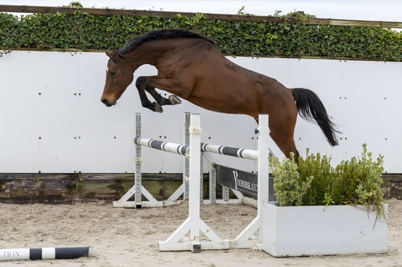 Sire Uriko (Untouchable x Hors La Loi II) competed at 1.45 m international level and has proven himself as a highly valued breeding stallion. He is known for passing on reflexes, carefulness and quality, with offspring competing at the very top of the sport. Well-known progeny include Uricas van de Kattevennen (1.65 m), Untouched (1.60 m) and Li La Bo (1.60 m). The Untouchable line is renowned worldwide for blood, sharpness and modern sport qualities. Grafin is a broodmare with blood and quality. She pushes well off the ground, jumps light-footed and shows a careful, correct technique with plenty of reflexes. Her movement is balanced and powerful, with good use of her body. She produced a foal in 2025 and has not been bred again, making her a rare opportunity to acquire a broodmare from a family that has produced numerous international sport horses and approved stallions. Grafin is suitable to carry a foal herself and is also highly interesting for embryo transfer and/or ICSI, allowing the breeder full freedom in stallion choice. The damline of Grafin is exceptionally deep and internationally proven. Dam Corvette I (by Lasino) descends from a strong Holsteiner performance family. Granddam Magic Mouse (by Acord II) produced several high-level performers, including GK Calucci (approved, 1.40 m) and GK Lancome (1.50 m international). Further back, Gloria VII (by Contender) and Winnie V (by Caletto II) anchor a damline that has produced an extraordinary number of international sport horses and approved stallions such as Leconte 6 (1.60 m), Helena XIII (1.60 m), Ilona IV (1.60 m), GK California (1.50 m) and GK Caamp (1.50 m). With influential sires such as Untouchable, Casall, Clarimo, Calido I, Lerano, Lord and Contender throughout the pedigree, this family is known for durability, mentality and consistent top-level performance. Grafin is therefore a broodmare of outstanding genetic value, ideal for breeders aiming to produce future international showjumpers.