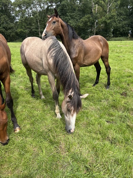 We are offering our beautiful stallion "Concorde" from Casall x Del'Arko for sale from our breeding program. He was a promising young stallion candidate with his modern, athletic appearance and a typy head. As a foal, he already placed at the Foal Championship and was a real eye-catcher. Unfortunately, one testicle has not descended and is still located in the inguinal region, so we must sell him as a cryptorchid (rig stallion) due to our downsizing of the breeding operation. Concorde is also a wonderful character for a yearling, very gentle and well-mannered in handling. He grew up in a stallion herd during the summer and has developed beautifully there. He demonstrates impressive movement, and nothing stands in the way of a sporting career. A veterinary examination (AKU) can be arranged at any time for serious interest. Current videos are yet to be taken, as he has recently returned from the stallion pasture to us for the winter. Since we are currently reducing our Holsteiner breeding, please feel free to browse our other listings as well.