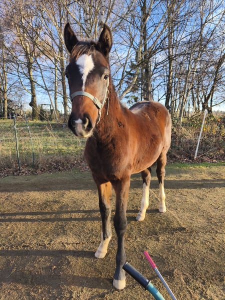 Dieser auffällige Hengst namens Dervano erblickte am 06.06.2025 in unserer Hobbyzucht die Welt. Er ist dem Menschen gegenüber sehr offen und freundlich und lernt sehr schnell.Hufe bearbeiten lässt er schon wie ein großer. Er wächst in einer Aktivstallhaltung auf und zeigt sich da auf verschiedenen Untergründen sehr trittsicher. Zudem ist er mit sehr schönen Gängen ausgestattet. Seine Mutter ist eine Staatsprämienstute von Now Or Never M x Argentinus. Sie wurde bei der Vereinsschau mit der dem 1A Prämie ausgezeichnet und wurde Klassensiegerin. Bei Ihrer Stutenleistungsprüfung ist die Durchschnittliche Wertnote fürs Springen mit 9,0 hervorzuheben. Ihre Nachkommen gehen bereits erfolgreich im Springen sowie in der Dressur. Diarado – Siegerhengst, Starvererber, Leistungsgarant Der Vater und Holsteiner Körsieger von 2007 überzeugt bis heute durch außergewöhnliche Typausprägung, Rittigkeit und Vererbungskraft. Mit über 50 international erfolgreichen 1,60 m-Springpferden, fünf CCI5-Vielseitigkeitspferden und über 100 gekörten Söhnen gehört er zur Weltspitze: • Platz 12 im WBFSH-Springranking • Platz 1 als Vielseitigkeitsvererber. Diarado steht für moderne Sportpferdezucht auf höchstem Niveau – sprunggewaltig, rittig und züchterisch überragend. Er bekommt Papiere vom Holsteiner Verband und gehört zum einem der erfolgreichsten Leistungsstämme 173. Er könnte vorerst auch hier noch zur weiteren Aufzucht stehen bleiben. Preis der Qualität entsprechend, bei passenden Zuhause jedoch verhandelbar.
