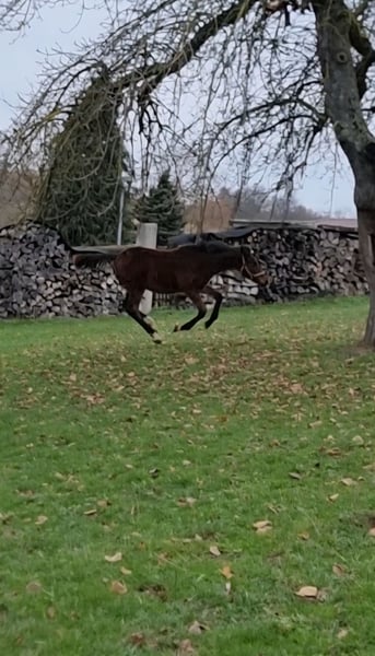 Angeboten wird ein prämierter, bildschöner, ausdrucks- und bewegungsstarker Holsteiner Hengst von Million Dollar x Comme il faut x Caretano aus dem Stamm 104A. Aus der Ururgroßmutter Danett entstammen die gekörten Hengste Alcatraz (von Accord II), Amidou (von Alkatraz), WT Lillix (von LioCalyon) und WT Lakota (von LioCalyon) mit Drew Weber. Die Urgroßmutter Isett brachte die Springpferde Quicky H (von Quick Star) mit Tina Deuerer, Campino H 2 (von Calato) mit Petra Püttmer, Casino Royale 17 (von Calato) mit Dr. Dominik Roeder, Cendrillon Marron (von Coriano) mit Josefine Martinello, Zalazar D (von Zinedine) mit Noa Ben Zeev und Victoria D (von Vagabond de la Pomme) mit Tamina Seibold. Aus der hochinteressant gezogenen (8x Ramzes AA) und fruchtbaren Großmutter U-Careta entstammen inzwischen 9 Pferde, darunter die in der Vielseitigkeit in den USA sehr erfolgreichen Friday (von Chin Champ) mit Adisso Hagan und Clueso (von Clarimo) mit Maya Clarkson. Weitere Nachkommen haben in Schweden und Spanien ihren Stall gefunden. Die Mutter Holly KM musste wegen einer Verletzung bereits früh in die Zucht wechseln. Sie erhielt eine Bezirksprämie und brachte bislang 5 Fohlen, 4 davon sind prämiert. Die älteren Geschwister zeigen sich im Umgang durchweg freundlich, aufgeschlossen und zuverlässig. Das Pedigree des Vaters Million Dollar ist von sporterprobter Leistungsfähigkeit in seltener Konzentration geprägt. Sein Vater Plot Blue war Goldmedaillengewinner (Team) der Weltreiterspiele 2010 in Lexington, Sieger des Weltcup-Finales 2010 und Sieger des Top Ten-Finales 2009. Sein Großvater Vigo d’Arsouilles war 2010 siegreich in der Einzelwertung der Weltreiterspiele in Lexington und sein Urgroßvater Cento war Mannschafts-Goldmedaillengewinner der Olympischen Spiele in Sydney, Sieger des Weltcup-Finales in Leipzig und Sieger im Großen Preis von Aachen. weitere Informationen zum Vater finden Sie unter: https://www.holsteiner-verband.de/de/hengsthaltung/hengste/pferd/million-dollar-bwp Der Jährling ist artig und gut zu händeln (kennt Halfter, Hufschmied, Kinder, Haustiere, Trecker, Tierarzt, Wurmkur usw.) und kann bei Interesse gern besichtigt werden. Transport nach Absprache möglich. Videos und weitere Informationen auf Anfrage.