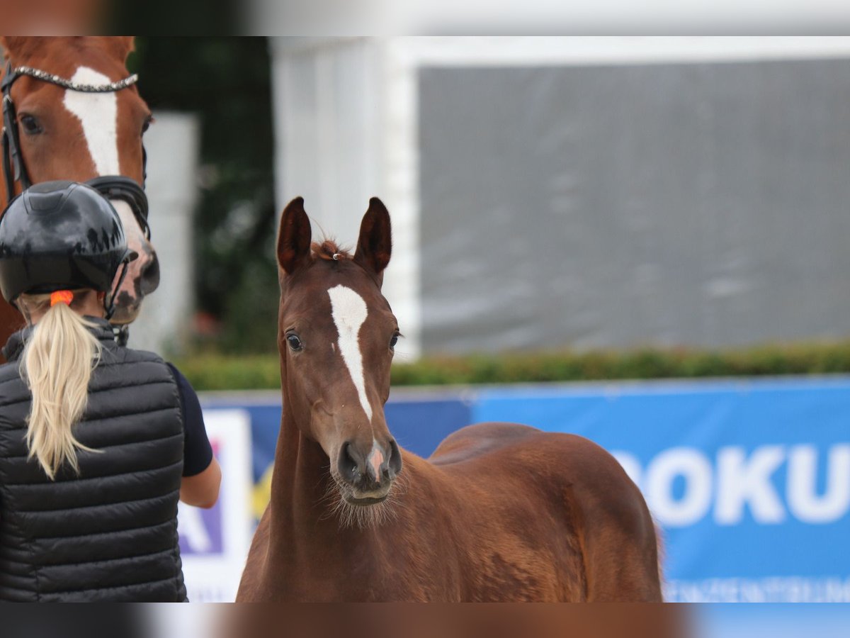 🏆 Award-winning champion foal with top lineage – typy, expressive movement, and a strong character! We are offering our beautiful, premium colt for sale, who has also successfully presented himself as a champion foal. He impresses with his friendly, outgoing personality and is very trusting, eager to learn, and balanced in daily handling. His movements are expressive, elastic, and ground-covering – a genuine young horse with potential for breeding and sport! The foal is raised appropriately in a mixed herd, regularly dewormed, introduced to the farrier, and will of course be delivered with a valid equine passport. 📍 25926 Ladelund 📅 Born: April 9, 2025 🔹 Gender: Colt 🔹 Color: Dark chestnut 🔹 Available: Immediately --- **Sire: Coeur Rouge (by Conthargos – Casall)** Coeur Rouge is a modern, typey, and performance-oriented stallion with excellent jumping talent. He descends from the top sire Conthargos, who has produced numerous international sport horses, and carries the best Holsteiner performance bloodlines through Casall. Coeur Rouge was awarded the main premium at the Oldenburg-International Jumping Horse Breeding Association (OS) and impresses with his dynamism, ability, and character. WFFS-negative tested – also of interest for breeding. --- **Dam: Claire de Lune 12 (by Catoki – Calido)** Claire de Lune 12 is awarded the district premium by the Holsteiner Verband and was successful up to M-level in show jumping competitions. She is by Catoki, the internationally successful Grand Prix show jumper, known for rideability, technique, and willingness to perform. Her sire Calido is one of the most influential sires in modern show jumping breeding, representing type, performance, and top character. Claire de Lune consistently passes these qualities to her offspring – the foal already shows a lot of expression, balance, and presence. --- This colt combines an excellent performance pedigree, premium conformation, and a remarkable character – a true young talent for breeding, sport, and show. For serious inquiries, we are happy to send additional photos, videos, and the full pedigree.