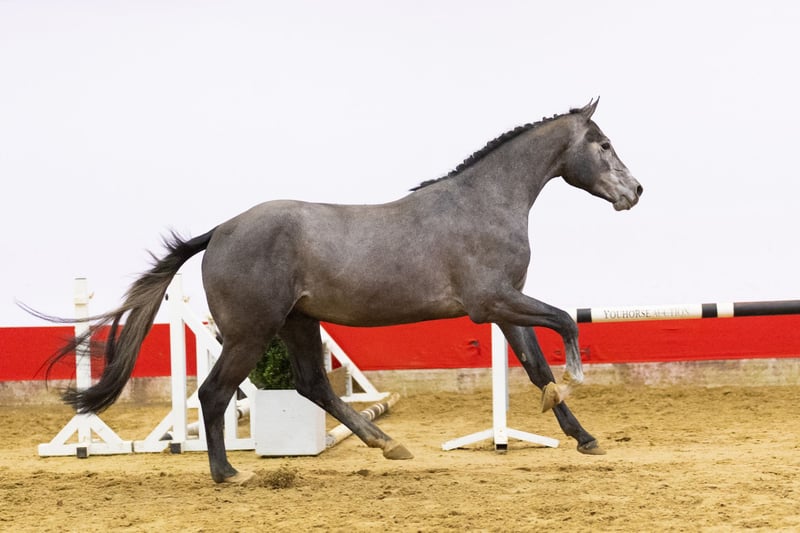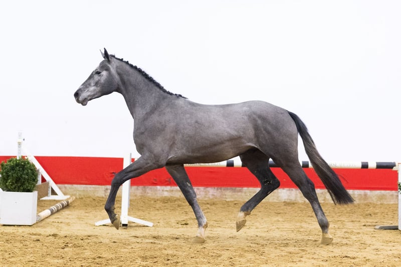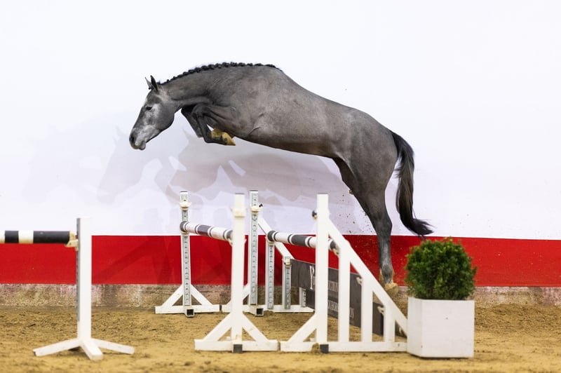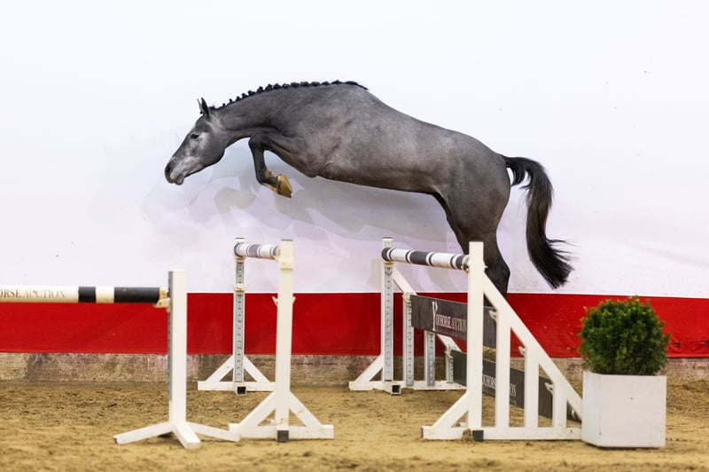 https://youhorse.auction/en/auction/Diabello-PS-DIARON-x-BALDINI-II Exceptionally bred, light-footed, promising athlete with top-notch manner. This handsome grey immediately stands out for his jumping style. He jumps very carefully, jumps back well from the fence, and demonstrates both good foreleg technique and strong hindquarters. Light-footed in his movements and beautifully built, he is a horse that shows quality and control over the jump. Besides being an interesting show jumper, he could also be very suitable as a hunter for the American market. Sire Diaron OLD (Diarado x Come On) competed internationally at the 1.50m level. He is known for transmitting technique, disposition, and quality over the jump. His offspring have produced several horses that compete at the 1.45–1.55m level, including Diarona PS (1.55m) and Diarouge Blue PS (1.50m). Damline The dam is C-Belladonna (Baldini II), a mare from an exceptionally strong sport lineage. She is the full sister of the legendary Belladonna, who competed internationally at the highest level (1.60m Grand Prix) under Meredith Michaels-Beerbaum. This direct damline has produced, among others: – Belladonna (Baldini II), international 1.60m Grand Prix – Coeur de Bella Donna (Cornet Obolensky), international up to 1.45m and approved by several studbooks – Ucalido NT (Udarco van Overis), international 1.40m – Several horses at the 1.30–1.45m level Further back in the lineage, we find an exceptional concentration of international show jumpers and approved stallions, including horses at the 1.40–1.60m level. A proven performance line in which sport, technique, and attitude have been ingrained for generations.