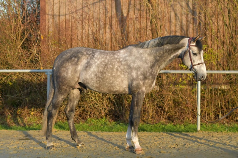 Absolutely stunning breeding stallion Cici – your future partner in show jumping! We are pleased to introduce Cici, an exceptionally talented and beautiful breeding stallion. Cici stands out due to his high quality and impressive jumping ability. With his calm and well-mannered nature both on the ground and under saddle, he is the perfect partner for ambitious riders. First-class jumping talent: Cici jumps effortlessly and consistently demonstrates eagerness to learn and motivation during training. Even at competitions, such as a 1.20m course, he handles the challenges with ease. He successfully completed a 50-day stallion performance test in jumping and is freshly shod – with no issues! Ready for use and easy to handle: Cici is immediately ready for competition and prepared to be ridden. Under saddle, he behaves stallion-like in a discreet manner and does not show interest in mares. Additionally, he is well-trained and also makes a great impression in dressage. Special offer: If taken immediately, you will receive a 5% discount on the sale price! Test opportunity: We offer you the chance to test Cici with us for one week, accompanied by experienced trainers. This trial week can be tailored to your needs and includes lessons as well as practical experience. Please note that a trial fee applies. Trial riding: You are welcome to visit and see Cici in person. The cost for a test ride or viewing is €50 per person. Seize this unique opportunity to get to know Cici and see his potential firsthand! We look forward to your inquiry!