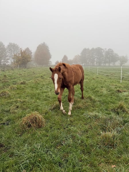 Zum Verkauf steht ein vielversprechender Holsteiner Hengst von Deichkind aus einer Amigo xx - Alcatraz - Wildfeuer - Anklang Mutter, geboren im Mai 2025 Für dieses wunderschöne Holsteiner Hengstfohlen wird ein neues, passendes Zuhause gesucht. Er sucht nun seinen Menschen, der sein großes Potenzial erkennt und ihn liebevoll weiter fördert. Er ist unglaublich zutraulich, neugierig und menschenbezogen und mit Freude bei der Sache. Auch seine Bewegungen sind überdurchschnittlich schön, mit viel Schwung und Elastizität in allen drei Grundgangarten. Er wird ein großrahmiger, beeindruckender Wallach oder Hengst werden. Das Wichtigste auf einen Blick: • Rasse: Holsteiner • Geschlecht: Hengst • Charakter: sehr menschenbezogen u. lernfreudig • Bewegung: ausdrucksstark und taktsicher • Besonderheit: tolle Farbe & viel Ausstrahlung • Abgabe: ab sofort • er steht aktuell in einem Aufzuchtplatz Ich wünsche mir für ihn ein Zuhause, in dem er mit Herz, Verstand und Zeit groß werden darf.