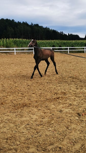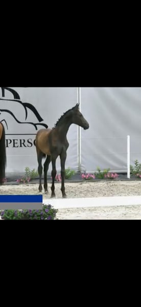 ogierek holsztyński urodzony 12.04.2025 po ogierze Cahil-Cornet Obolensky-Contander-Cor De La Bryere Matka: Colman ( Carthago-Lord) Długonogi, taktowny i lekki w ruchu W tegorocznym czempionacie źrebiont holsztyńskich został premiowany i w końcowym ringu zdobył 6 miejsce Tel 531 384 786 https://www.horsetelex.com/horses/pedigree/2718444/camilio.