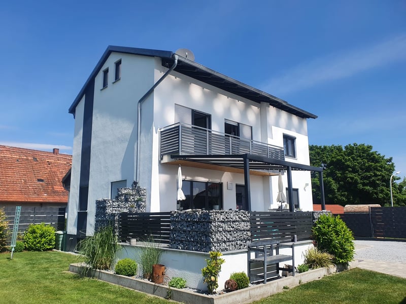 •Terrasse mit moderner Aluminium-Überdachung