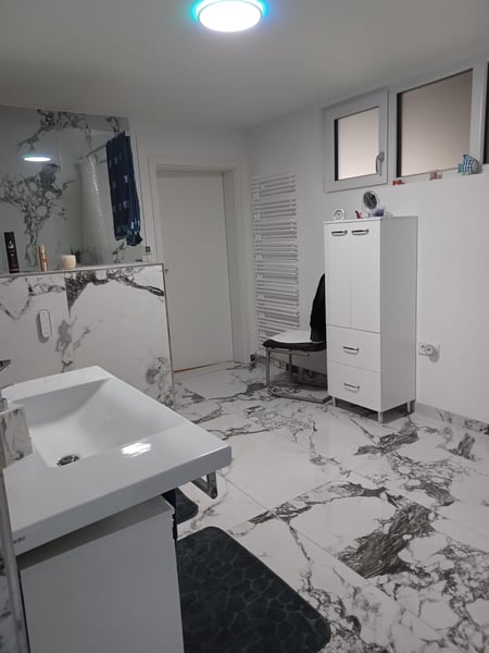 Eine weitere Wohneinheit befindet sich im Werkstattgebäude. Diese Wohnung wurde 2022 sehr hochwertig ausgebaut, liegt im Erdgeschoss, verfügt über einen separaten Eingang und bietet ca. 70 m² Wohnfläche. Ergänzt wird sie durch eine außerhalb der Wohnung gelegene Waschküche. Für diese Einheit sind getrennte Wasser- und Stromzähler vorhanden.
