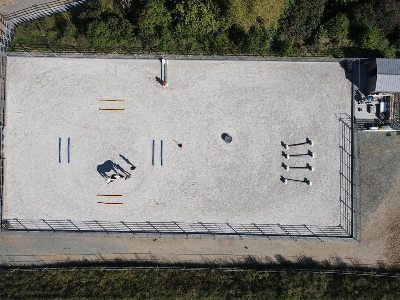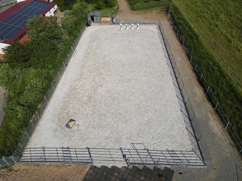 Die Reitanlage wurde 2012 errichtet und ursprünglich nur etwa zwei Jahre in Betrieb genommen. Sie umfasste 14 Boxen, teilweise mit Paddock, eine Sattelkammer, einen Reitplatz, angrenzende Koppeln, ein Reiterstüble sowie ein Heizsystem für die Tränken. Im Jahr 2020 erfolgten umfangreiche Umbauarbeiten zur Nutzung als Offenstall mit Paddocktrail. Die gesamte Anlage ist mit einer hochwertigen, langlebigen Einzäunung ausgestattet und eignet sich auch für Hengsthaltung. Zudem wurde ein hochwertiger Reitplatz neu errichtet. Aktuell sind 4 Paddockboxen und 2 Innenboxen erhalten geblieben. Ein Rückbau zu einem reinen Boxenstall ist jederzeit problemlos möglich; bei vollständigem Rückbau stehen derzeit 14 Boxen zur Verfügung, darüber hinaus besteht weiteres Erweiterungspotenzial.