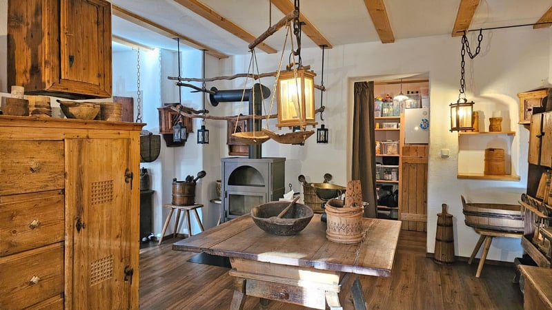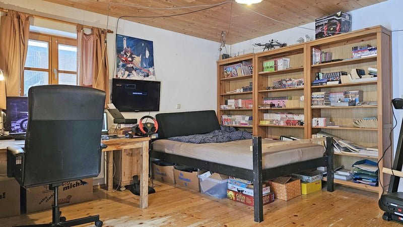 Das Wohnhaus wurde im traditionellen bayerischen Stil errichtet und mit viel Holz, Liebe zum Detail und handwerklichem Anspruch gestaltet. Die rund 150 m² Wohnfläche verteilen sich auf fünf Schlafzimmer, ein Wohnzimmer, eine Küche, ein Esszimmer sowie ein Badezimmer und bieten ausreichend Platz für Familie, Gäste oder individuelle Nutzungskonzepte. Eine urige Holzhütte mit Heizung und Stromanschluss schafft zusätzlichen Raum für Rückzug, Kreativität oder geselliges Beisammensein.