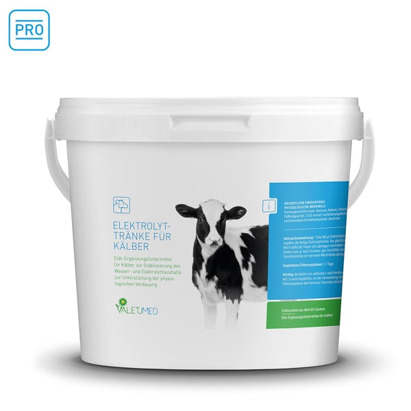Die Valetumed Elektrolyttränke ist ein Diät-Ergänzungsfuttermitel für Kälber zum Ausgleich und zur Stabilisierung des Wasser- und Elektrolythaushalts bei Durchfall. Hohe Pufferkapazität zum Ausgleich der durchfallbedingten Azidose des Kalbes. Bei Gefahr von, während oder nach Verdauungsstörungen (Durchfall).