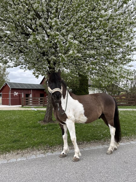 ❣️Lucky❣️ It is with a heavy heart that we have to part with our wonderful pony Lucky. Due to our daughter’s training in Regensburg, it is no longer possible for her to manage two horses. Lucky is a 13-year-old Huzul gelding standing approximately 140 cm at the withers. He is a stunning piebald with a striking brown and white coat – and, above all, a true character pony. ✨ What makes Lucky special: - Loves long rides (alone or in a group) and is completely reliable - Shows a lot of enthusiasm for jumping - Curious, friendly, and very people-oriented – he would do anything for a banana 🍌 - Traffic-safe (cars, trucks, tractors… no problem) - Knows dogs and remains calm - Has participated in events like Leonhardiritt, Martiniritt, and children’s dragon rides, as well as orienteering rides - Crosses water without issues - Farrier- and loading-friendly - Easy to handle at the vet and dentist - Regularly vaccinated and dewormed - Familiar with both box and pasture life With his riding partner, Lucky has already competed in a small club event (rider competition). Currently, he is being ridden by two children in lessons and performs really well. 💡 Important to know: Lucky is a typical pony with charm and a bit of mischief. He occasionally tests his rider, so he’s not an ideal beginner pony. An experienced child or youth rider, supported by parents or a riding instructor, would be perfect. 🩺 Health: In August 2022, Lucky was diagnosed with laminitis. Thanks to a grain-free diet, regular hoof care (with egg nails), and appropriate exercise, he is currently completely sound and rideable without any restrictions. Videos can be provided upon request. Lucky is a pony with heart, personality, and lots of potential for wonderful shared adventures. We wish for him a loving home where he will continue to be supported, loved, and understood. 💌 Serious inquiries are welcome via message.