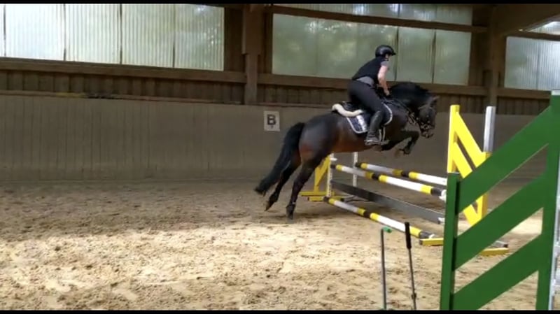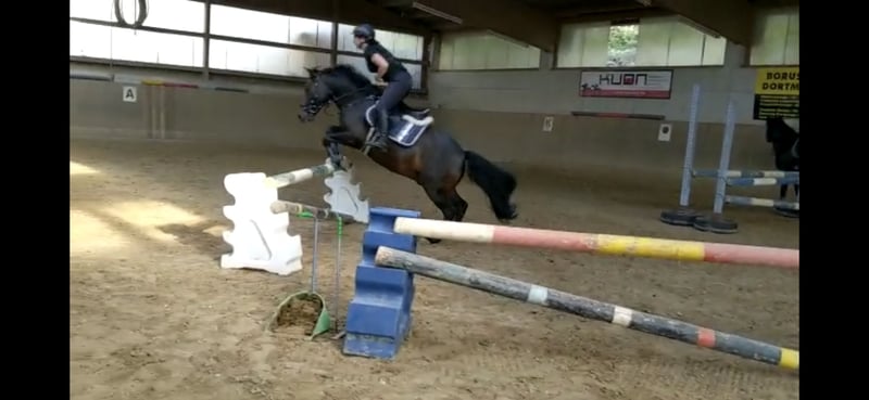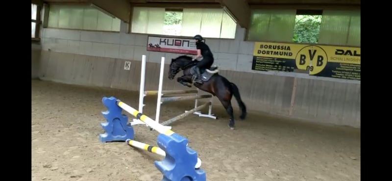 Braver und unkompliziert Wallach mit 3 sehr sitz bequemen Grundgangarten. Leicht zu reiten auch von schwächeren Reitern. Deckt durch seinen Körperbau auch größere Reiter gut ab. Er arbeitet sehr gerne und ist immer motiviert dabei ohne Kopflos oder stark zu werden. Kleinere Sprünge sind für ihn kein Problem und bereiten ihm viel Freude. Im Gelände ist er brav und unerschrocken. Durch seinen Charme und seinen Charakter konnte er bisher jedes Herz erobern. Ein Pony geeignet zum sportlichen Reiten oder auch nur für gemütliche Ausritte. Das komplette Zubehör kann auf Wunsch mit erworben werden.