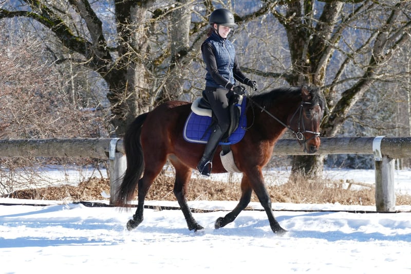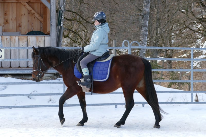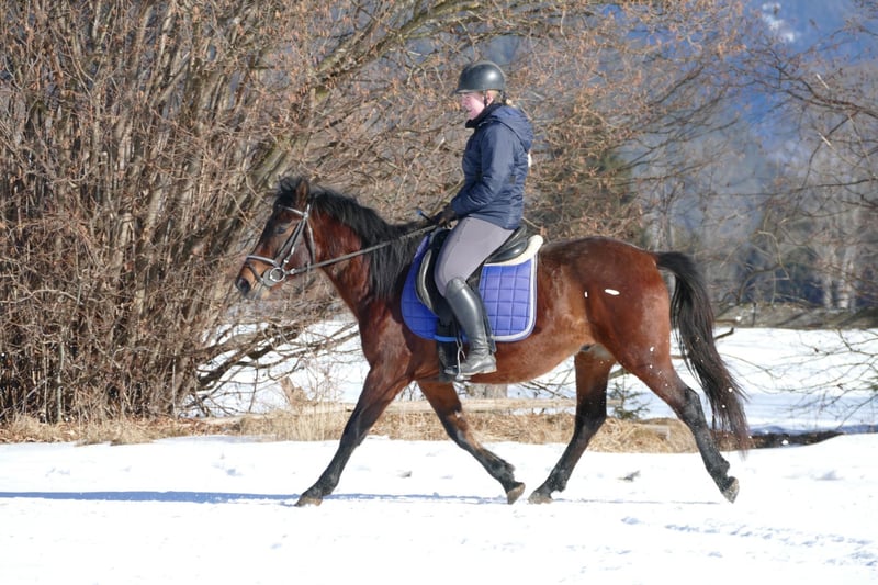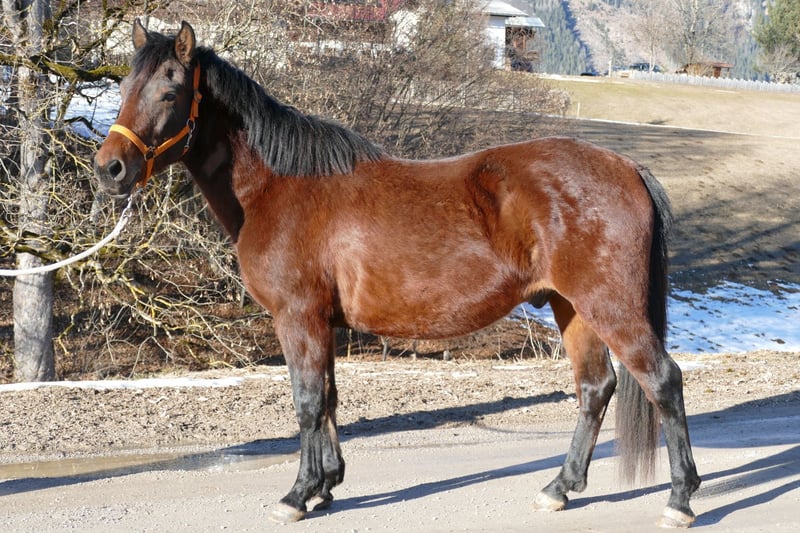 Huzule gelding, 4 years old, chestnut with a reddish hue, standing approximately 148 cm. A well-built, compact, and rideable type with an excellent character and great potential for all disciplines. He is friendly, curious, fearless, and learns very quickly. Confident in the terrain, a promising young horse that will develop rapidly in both dressage and jumping. Easy to handle and obedient, calm and well-behaved under saddle — suitable even for children. An ideal horse for the future! Shoeing and loading are no problem. Socially compatible within a herd and suitable for an open stable environment.