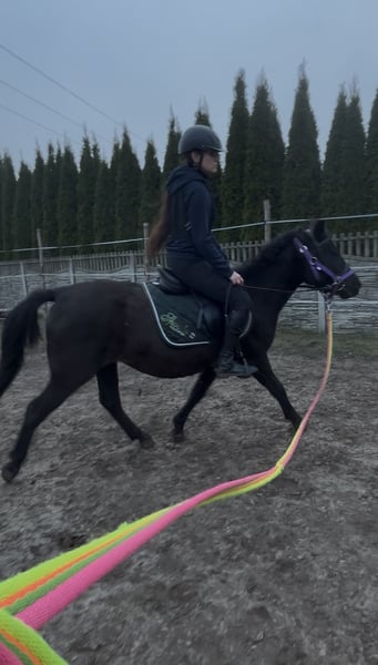 Witam, sprzedam/lub zamienię zgrabną i bardzo inteligentną klacz huculska Amelka (Goral). - ma 4 lata, ok.135 w kłębie, Prawidlowe kopyta, zdrowa, duża odporność - urodziła źrebaka 7 msc temu, przekazuje bardzo dobre geny i dobrą głowę, jest bardzo dobrą matką. Źrebak po niej jest elektryczny, ładny lekki ruch, bardzo skoczny, szukający kontaktu z ludźmi, gruba sierść, bardzo gęsta grzywa i ogon - na padoku bezproblemowa, unika sprzeczek -dostałam ją jak była w stanie surowym, nauczyłam ją całych podstaw -czyszczenie, podawanie kopyt, odczulanie, lonża, początki zajeżdżania, wyjazdów w teren - kobyłka jest elektryczna ale bardzo spokojna, na stanowisku można ją zostawić a ona będzie stać bez ruchu, na spacerach bardzo spokojna z ręką na sercu można dać dziecku i wiem że nic nie zrobi i będzie grzecznie szła ( u nas chodzi często jako koń czołowy ze względu na swoją odwagę i niepłochliwość), jest totalnie bombo odporna. Grzecznie chodzi na lonży, nie ma problemu z zakładaniem sprzętu, jest w trakcie zajeżdżania (póki co stęp i kłus) ale i tak przyjmuje niedoświadczonych jeźdźców - do każdego jest bardzo kochana i przyjazna - bardzo skoczna i szybka, kocha skakać. W korytarzu sama leci aby skoczyć (pierwszy raz w korytarzu skoczyła 85 cm z możliwościami na dużo więcej) bardzo dobra technika skoku. W przyszłości napewno dobrze się sprawdzi w skokach jak i zawodach - filmiki i zdjęcia wysyłam na Messenger lub Whatsapp, do wglądu również ruch źrebaka - sprzedaje z bólem serca ze względu na potrzebę czegoś większego - więcej info na pv, cena do lekkiej nego :)