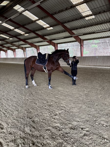 With a heavy heart, I am seeking a new home for my 10-year-old Hungarian sport horse gelding, "King." King is approximately 17.9 hands tall and has been trained in dressage up to level L, although he has never been shown in competitions. In addition to classical training on the arena, he enjoys groundwork, circus tricks, and relaxed trail rides – he will never be boring to work with. Due to lack of time, he is currently not in regular training, but he possesses a solid foundation, a strong willingness to learn, and a friendly nature. Character-wise, King is a cuddly, lovable, and playful horse whom everyone quickly falls in love with. He is being offered complete with all accessories (saddle, bridle, blankets, saddle pads, leg protection, etc.). He will only be sold into the best and loving hands. For serious inquiries and further information, I look forward to receiving a message.
