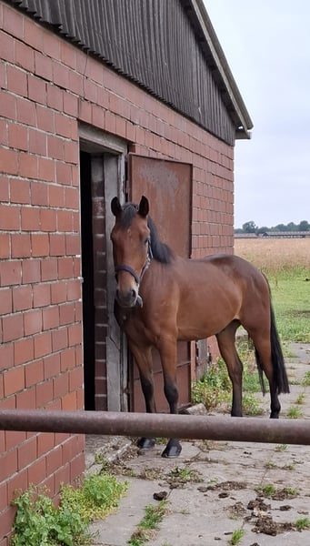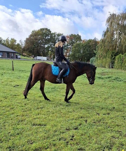 4-jähriger Pony-Wallach Aufgrund von Schwangerschaft steht unser 4-jähriger Pony-Wallach zum Verkauf. Er wurde angeritten und ein paar mal zweispännig gefahren. Im Umgang zeigt er sich clever und aufmerksam – allerdings mit einem ordentlichen Dickkopf. Daher ist er nicht für Anfänger oder Kinder geeignet. Alter: 4 Jahre Geschlecht: Wallach Größe: ca. 1,43m Charakter: Selbstbewusst, temperamentvoll, benötigt eine erfahrene Hand Gesundheit: Fit, regelmäßig entwurmt, Zähne gemacht, Hufschmied und Hänger kennt er Er ist kein „fertiges“ Freizeitpony, sondern ein junger Kerl mit eigener Meinung, der noch einiges lernen muss und der regelmäßig gearbeitet werden muss. Wer ihn konsequent, fair und mit Geduld fördert, bekommt ein tolles, vielseitiges Pony mit viel Potenzial. Aktuell wegen Umstand nicht im Training.