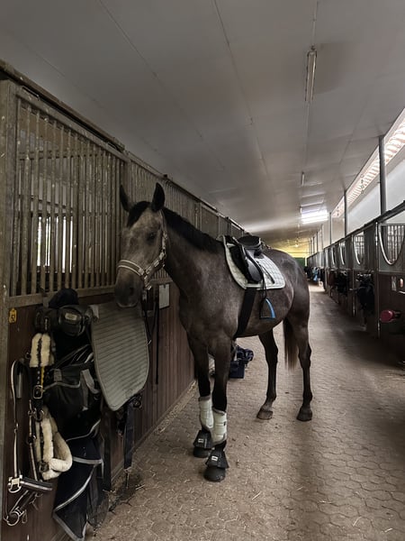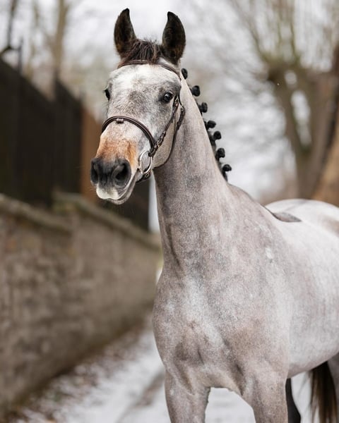 For sale is a stunning 4-year-old grey gelding standing approximately 16.1 hh. We are looking for a loving new home where he can continue to develop. This young gelding impresses with his honesty, bravery, and positive attitude towards work. In daily handling, he is open, friendly, and always straightforward – simply a horse that immediately wins your heart. Under saddle, he is comfortable to ride, with steady, rhythmic gaits. He offers great potential for further development. Since summer, he has been jumping under saddle and has already mastered small courses. He consistently demonstrates honest, powerful jumps and shows great talent for show jumping. A truly charming partner for ambitious riders seeking a talented and reliable young horse. He is also easy to handle in everyday situations: loading, farrier, grooming – no problem at all. Sale also includes his tack if desired. Trial rides available by arrangement. For more information, photos, or videos, please contact me via WhatsApp (+4915231434794), email (lebedevapolina785@gmail.com), or phone.