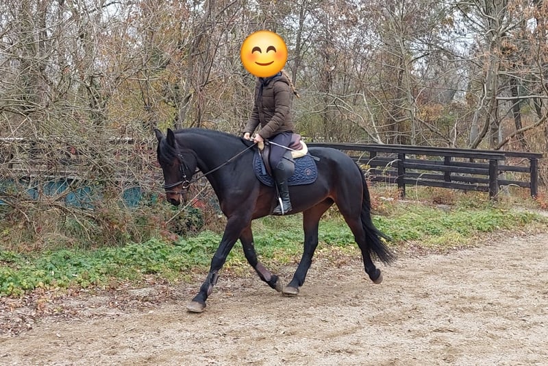 We are selling our approximately 16.1 hh, 5½-year-old gelding (Hungarian sport horse), ridden by my 15-year-old daughter. He is currently at a good basic level in dressage and works well on pole work. About six months ago, we started jumping training, and he now jumps around 80 cm. He has already gained experience in competitions and behaved exemplary in all handling, including trailer loading. During group rides, he remains relaxed and is not spooky. He stands patiently at the grooming area, but due to his age, we do not consider him suitable for beginners. He is very well-behaved at the farrier and is used to both open stable and box with turnout. X-rays from July 2024 show no findings. More information and videos are available upon request.