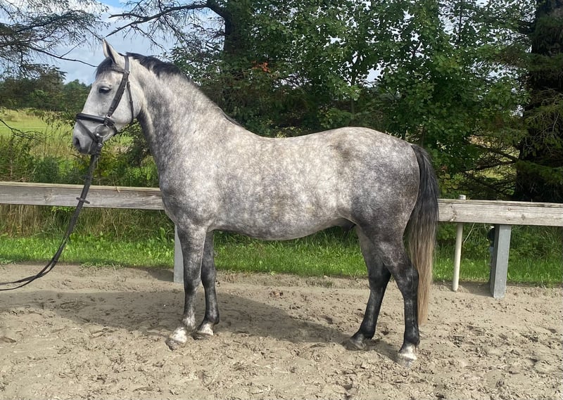 **For Sale: Hungarian Sport Horse** For sale is a beautiful Hungarian sport horse gelding, born in 2018. With a height of 142 cm, he is ideal for riders looking for a talented and versatile horse. This elegant grey impresses with his appealing presence and harmonious movement. He shows great potential in dressage and is already well trained. His friendly and open nature makes him a loyal partner, suitable for both experienced riders and ambitious beginners. He is well-mannered, easy to handle, and has a pleasant temperament. Additionally, he is regularly vaccinated, dewormed, and has a current health check. If you are looking for a talented sport partner who brings joy both in the dressage arena and on the trails, then this gelding is just right for you! If you are interested or need further information, please feel free to contact me. Viewings are possible by arrangement.