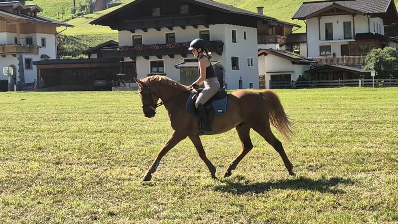 Monte ist ein verschmuster und liebevoller Fuchswallach. Mit seinen schwungvollen und elastischen Trab und einer guten bergauf Galoppade, gibt er den Reiter ein super Reitgefühl. Er ist sehr leicht in der Hand und bemüht sich immer zu gefallen. Am Sprung hat er ziemlich viel Go. Deswegen braucht er in dieser Diziplin einen Reiter der schon mehr Erfahrung mitbringt. Momentan ist er barhuf. Er ist schmiede - und verladefromm und wurde regelmäßig entwurmt und geimpft.