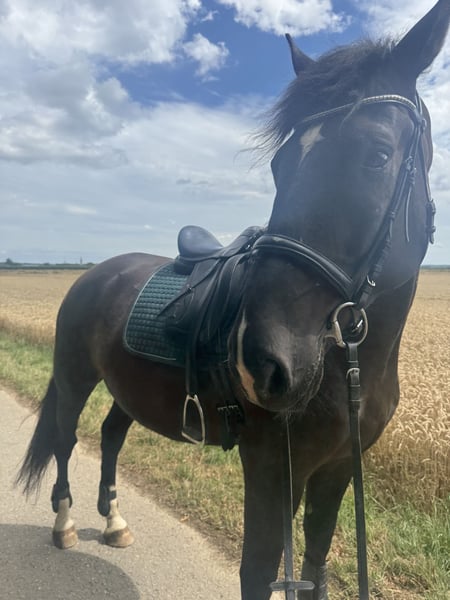 I am offering my 7-year-old Warmblood gelding (approx. 16.1 hh) for sale. He is a fantastic horse – confident, personable, and always riding with heart. Description: This gelding impresses with his elegant appearance, eagerness to learn, and balanced temperament. He is at the beginning of his training and shows great talent, motivation, and willingness to work. Despite his young age in training, he always strives to do his best and learns quickly. In daily handling, he is straightforward, friendly, and pleasant – a true reliable partner in his development. Suitability: Ideal for riders who enjoy furthering a wonderful horse’s education and growing together – whether for leisure riding, dressage, or as an all-rounder. Special features: - Age-appropriate backing and training - Regularly introduced to the farrier and veterinarian - No bad habits, well-behaved in the field - Complete tack included in the price (e.g., saddle, bridle, blankets, etc.) - Reluctantly offered due to family reasons To prevent riding tourism, a fee of €30 will be deducted from the purchase price. If genuinely interested, I look forward to calls or messages. The horse can be viewed and tested riding by appointment at any time. He is meant to find a loving and nurturing new home.