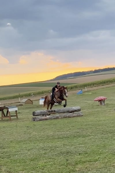 Ich verkaufe schweren Herzens meinen 8 jährigen, ca 1.82m großen Gidran Wallach Sero. Seit über 3 Jahren in meinem Besitz, kennt er alles, was ein perfekter Freizeitpartner kennen muss. Er ist leicht Dressurmäßig zu reiten, springt Wechsel, kennt alle Seitengänge, einfache Wechsel,… Bis 95 cm am Turnier platziert, und am Turnier immer super brav gewesen. War meist alleine mit ihm unterwegs, geht alleine auf den Hänger, bleibt brav alleine und super unkompliziert im gesamten. Beim ausreiten ein Traum, mutig und unerschrocken, geht alleine und in der Gruppe sehr brav ins Gelände. Bin ihn mehrfach Vielseitigkeis Training geritten, geht ins Wasser, und liebt das Gelände. Lässt sich ohne Sattel reiten, mit Halsring, kann einige Tricks und wäre sicher auch ein Ideales Familienpferd, er ist für jeden Blödsinn zu haben! Lässt sich auch mal von einem schwachen Reiter reiten, ist immer lieb und auf seinen Menschen bedacht. Steht bei mir Tagsüber in der Herde, Nachts in der Paddockbox, er ist sehr verträglich. Ich gebe ihn nur her, da er zwar ein Klasse Allrounder ist, aber kein Pferd für den höheren Springsport! Videos gern unter 06603676573, Vor-/Probereiten gern möglich (20€)