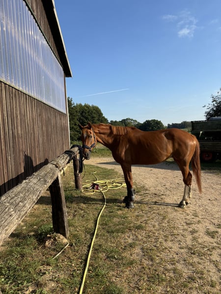 Schweren Herzens suche ich für meine geliebte Stute „Zara“ ein neues Zuhause. Sie ist ein ungarisches Warmblut (geb. 2009, ca. 1,72 m) und für mich ein absolutes Herzenspferd – ein Pferd, das man nur einmal im Leben findet. Zara ist eine unglaublich feine, ehrliche und menschenbezogene Stute mit einem ganz besonderen Charakter. Sie möchte immer alles richtig machen, denkt mit und gibt ihrem Reiter in jeder Situation ein sicheres Gefühl. Egal ob allein im Gelände,in der Gruppe, beim Baden im See, im Parcour oder im täglichen Umgang, sie ist stets brav und ausgeglichen. Ausbildung: * Dressur bis A und Springen bis L * mit der Vorbesitzerin erfolgreich Turnier gegangen, hierfür fehlte mir leider die Zeit * Sehr angenehm zu reiten, hilft beim Finden der Distanz an jedem Sprung * Auch Erfahrung mit Hundemeute, daher auch für Jagdreiter interessant Zara ist vielseitig einsetzbar und sowohl für ambitionierte Reiter als auch für jemanden geeignet, der einfach ein verlässliches Partnerpferd sucht. Bei der AKU ende 2023 wurde ein Chip im Sprunggelenk festgestellt, der sie jedoch bis heute in keiner Weise beeinträchtigt hat. Sie läuft aktuell hinten mit Duplos, was ihr sehr gut tut und ihr Gangbild stabilisiert. Saisonal war sie auch auf allen vier Hufen mit normalen Eisen beschlagen. Ich gebe sie ausschließlich ab, weil ich durch mein Abitur und meinen weiteren Lebensweg ihr zeitlich nicht mehr gerecht werden kann. Dieser Schritt fällt mir extrem schwer daher gilt: Platz vor Preis. Ich wünsche mir für Zara ein liebevolles, langfristiges Zuhause bei Menschen, die sie genauso schätzen, wie sie es verdient. Sie ist ein absolutes Verlasspferd. Bei ernsthaftem Interesse oder Fragen freue ich mich über eine Nachricht. 9000€ VHB Probereiten nach Absprache jederzeit möglich. Um Reittourismus zu verhindern nehme ich 20€ pro Proberitt, die selbstverständlich bei einem Verkauf verrechnet werden. Eine AKU kann bei eigener Kostenübernahme gerne realisiert werden.