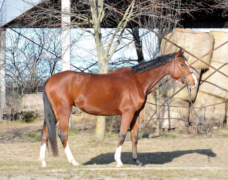 Eye-Catcher! Currently, this wonderful mare is in training with us and has been ridden at a solid riding horse level. She has already completed her first jumps under saddle. She is straightforward, easy to ride, motivated, and equipped with a pleasant go. She works well both on the arena and in the indoor riding hall and is familiar with group trail riding – an excellent foundation for further development! She is very well-behaved in handling, not temperamental, and has no bad habits. Up-to-date, good-quality X-rays are available. She is healthy, herd-friendly, and accustomed to both box and open stall living. She is farrier- and loading-friendly. Directly from the breeder! A test ride is possible by appointment after a phone call. Further information gladly by phone or