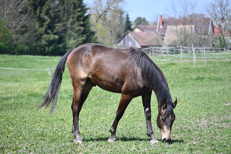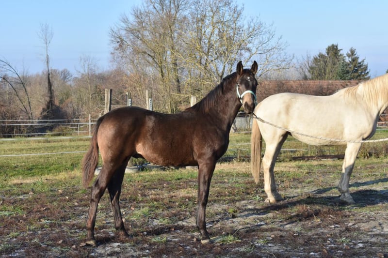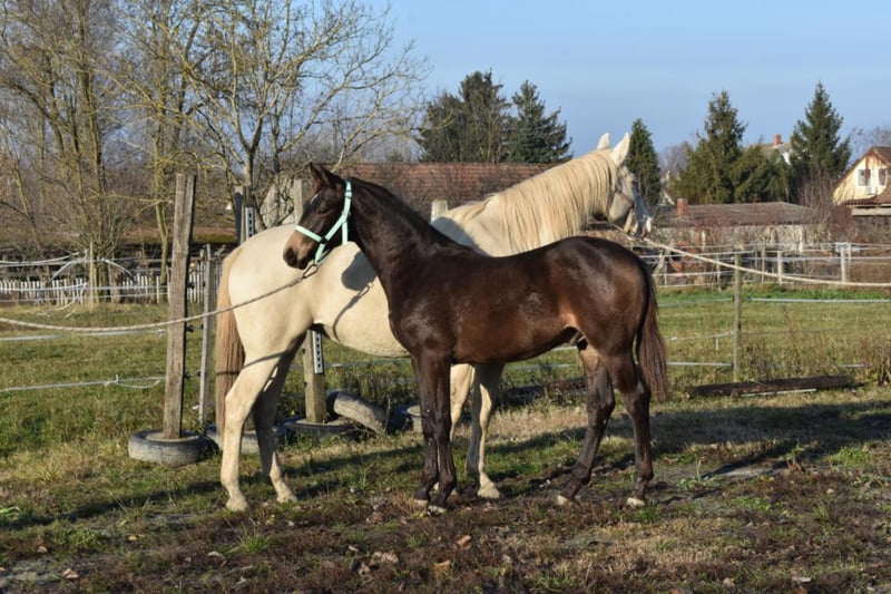 8 months old dark falcon (real smokey black) colts for sale directly from the breeder. He has extra exercise. 30 years in the service of horse breeding! We have several references in the EU!