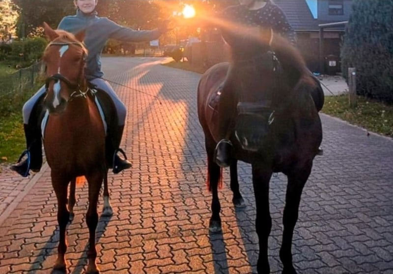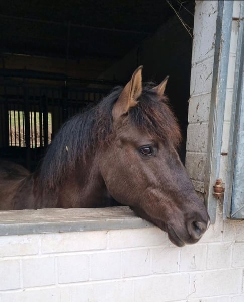 Âne de 11 ans, croisement de Konik, mesurant 1,51 m, à placer entre de très bonnes mains. Notre Shoki aime partir en balade et est très courageux aussi bien seul qu’en groupe. Il connaît les routes principales et est habitué au brouhaha. Sur le manège et en carrière intérieure, sa tête de poney peut parfois dépasser, mais avec un cavalier expérimenté qui sait bien se faire respecter, il répond volontiers aux aides et reste bien en selle. Avec des débutants, il peut s’arrêter facilement. En extérieur, il est comme une assurance vie et veille sur son cavalier. Typiquement, très confortable à la selle. Shoki vit chez nous en paddock et sur la pâture. Il connaît aussi la box, qu’il apprécie parfois brièvement. En main, il est aussi sage et courageux, mais peut aussi montrer sa tête de poney lorsqu’il voit quelque chose de délicieux. Avec une personne ferme et dominante, il n’y a aucun problème. Nous souhaitons une personne expérimentée, qui pourra le faire vivre en paddock et l’emmener en balade régulièrement. Il n’est pas adapté aux enfants ni pour la compétition. Avec les autres chevaux, il est très gentil et facile chez nous. Pour des raisons personnelles, il doit partir uniquement dans des mains de confiance.