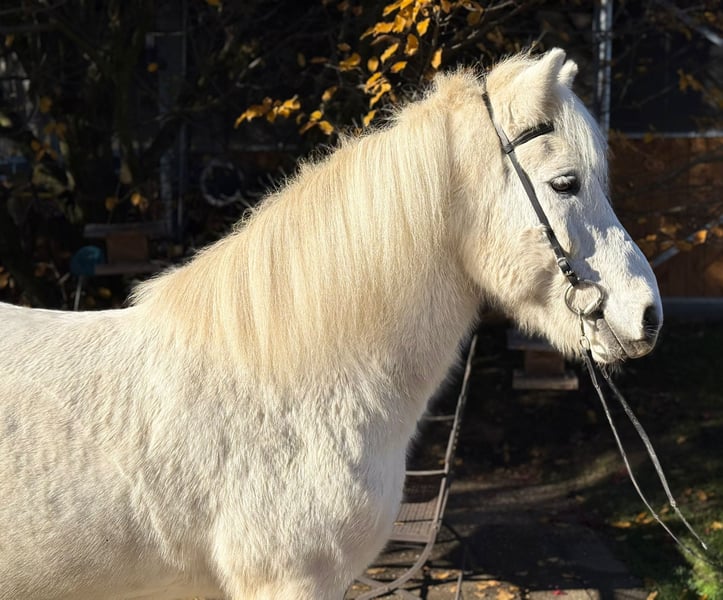 Hvellur frá Hvammi Wallach , *2012 in Island 144cm groß Ekzemfrei Viergänger beschlagen, entwurmt und geimpft V: Klængur frá Skálakoti 8,38 (Ext 8,39 Re 8,38) ‼️ VV: Gnýr frá Stokkseyri 8,26 (Ext 8,21 Re 8,29) ‼️ M: Linda fra Hvammi 7,76 (Ext 7,76 Re 7,75) ‼️ MV: Klettur frá Hvammi 8,49 (Ext 8,43 Re 8,54) ‼️ Hvellur alias „Eisbär“ überzeugt nicht nur mit seinem stabilen und kräftigen Körper, sondern auch mit seiner lieben und kuscheligen Art. Er steht völlig ruhig und entspannt am Anbinder, liebt ausgiebiges Pflegen und Putzen und kann von Streicheleinheiten gar nicht genug bekommen. Seine Gangarten lassen keine Wünsche offen: – ein schreitender, taktklarer Schritt, – ein schwungvoller, ausdrucksstarker Trab, – einfach zu reitender Tölt mit ansprechender Bewegung – sowie ein schön gesprungener, balancierter Galopp. Er wird wird von uns, wie all unsere Pferde, 5x die Woche trainiert (unter dem Sattel, an der Longe, auf der Bahn, in der Halle, im Viereck und im Gelände) Hvellur hatte es nicht so leicht mit seinem letzten Paddokfreund, denn dieser war sehr bestimmend und dominant. Deswegen sucht dieser liebe Kerl ein neues Zuhause. Wir kennen Hvellur schon lange und hatten ihn als sehr sozial und unkompliziert mit anderen Pferden in Erinnerung. Bei uns steht er gemeinsam mit einem Wallach in der Paddokbox und fühlt sich pudelwohl. Wir wünschen uns für Hvellur einen ambitionierten Freizeitreiter der gerne gute Gänge reitet, abwechslungsreich arbeitet und einen Partner sucht, der mit ihm durch dick und dünn geht. Er ist für jeden Spaß zu haben. Möchtest du dich selbst von diesem süßen Eisbär verzaubern lassen, dann melde dich gerne bei uns um einen Probetermin in A-5221 Lochen am See zu vereinbaren.