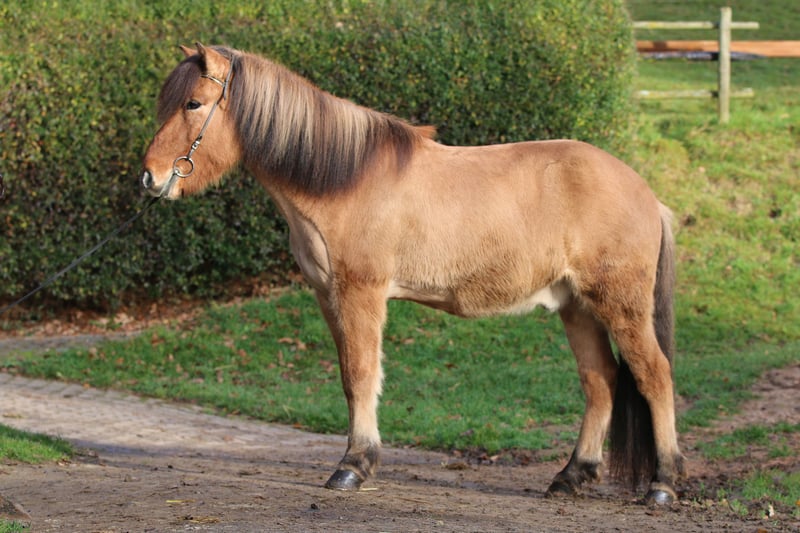 Keilir vom Kastanienwald – DE2013163919 Sire: Kraftur vom Heesberg – 8.22 Dam: Sif frá Bergstöðum Dam Sire: Kolgrímur frá Kjarnholtum I – 8.23 - Gentle - Large - Calm - Experienced - Fearless - Slightly Temperament - Attractive - No Eczema - Traffic-Safe Keilir is a large, friendly, and gentle gelding. Born and raised in Germany in 2013, he is an absolute treasure! He has everything a rider could wish for. He is tall, kind, talented, fearless, and has beautiful, clearly separated gaits. His temperament is calm, he remains unshaken, and always stays close to his rider. He moves with well-separated gaits, including a lot of tölt. Keilir is attentive and human-oriented. He enjoys attention and cuddles but never gets too close. He is polite and curious. Keilir has participated in several competitions; he was fearless and very well controllable. His highest scores were 5.70 in the four-gait test V5 and 5.50 in the tölt test T4. We do not necessarily see Keilir as a sport horse, as he lacks some temperament for high-level competition. Instead, we see him as an excellent leisure horse for calm, enjoyable rides. Keilir is a real ladies' man; tall, charming, with beautiful long legs and irresistible eyes. He suits many people – including beginners, children, or more cautious riders. For videos or further information, please contact us! Height at withers: 1.45 m More sale horses: https://www.heidberghof.info/islandpferde/verkaufspferde/