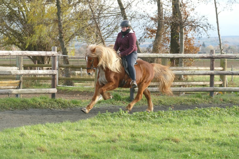 Rennpasstalent & Kumpel in allen Lebenslagen✨️ *2010 / 140 cm / gesund Standort 53881 Preis: 10.000€ VB! Glotti ist so viel mehr als nur ein Rennpasser - aber Rennpass ist sicher seine stärkste Gangart. Diese kann, muss aber nicht geritten werden und kommt auch nicht zufällig zum Vorschein. Glotti könnte im hohen Sport in den Passdisziplinen laufen - das hat er bereits mehrfach mit 8er Zeiten im Speedpass und 14er Zeiten im 150m Passrennen bewiesen. Und da wäre sicher noch mehr Potenzial! Im täglichen Umgang ist Glotti ein Vorzeigepferd: stehts ruhig, geduldig und gelassen, wobei er ein bisschen Kopfscheu ist. Das hat mich aber nie groß gestört- ich finde es auch nicht so toll wenn mir jemand im Gesicht rumfummelt. :) Er ist auch super lieb beim Schmied, fährt 1A Anhänger und fremde Umgebung interessiert ihn nicht. Er lässt sich außerordentlich lieb longieren und zieht dabei nie. Er kennt Stangenarbeit und ist trittsicher. Glotti kennt vielseitige Arbeit: Regelmäßige Arbeit vom Boden gehört genauso zu seinem Alltag wie Ausritte, Gymnastik in der Halle oder Gangtraining auf der Bahn. Er ist fünfgängig geritten und hat in allen Gängen guten Takt und viel Fluss - den Galopp kann er grundsätzlich sehr gut, muss man aber immer etwas im Training behalten damit er sicher ist. Sein Tölt ist sehr bequem, taktsicher und einfach zu reiten - lädt ein zu ellenlangen Töltstrecken :) Seine Nervenstärke ist bewunderswert: ich glaube es gibt Nichts, wovor er sich je erschrocken hätte. Flotte Ausritte mit ihm sind ein Genuss, da man sich wirklich auf ihn verlassen kann. Glotti ist kein Anfängerpferd, mit ein bisschen Einfühlungsvermögen aber ein Pferd für viele Reiter. Er wird hier regelmäßig von 2 gut reitenden 14 Jährigen mitgeritten. Aktuell sehe ich ihn hauptsächlich bei einem pfiffigen Jugendlichen mit Ambitionen oder einem routinierten Erwachsenen der ein sensibles, leistungsbereites Pferd zu schätzen weiß. Da ich ihm zeitlich nicht gerecht werde, steht an ihm absolut Platz vor Preis!