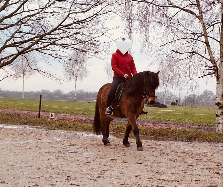 Leider muss ich mich von meinen geliebten 18 jährigen Isländer Wallach Floki trennen, da wir einfach nicht zusammen passen. Ich bin ein sehr ängstlicher Mensch und Floki braucht jemanden der ihm Sicherheit gibt. Im Umgang ist Floki sehr brav und freundlich. Er hat Spaß an der Bodenarbeit, geht gerne im Wald spazieren und genießt Putzeinheiten. Beim Reiten steht Floki sehr fein an den Hilfen: Beim freien Reiten benötigt einen souveränen, erfahrenen Reiter mit ruhigem Sitz. Er ist regelmäßig beim Schmied und Exemfrei und ca. 1,38m groß. Floki ist viergängig geritten und verfügt über einen sehr leicht abrufbaren Naturtölt. Floki kennt Platz, und Gelände. Er zeigt sich unerschrocken gegenüber Autos, Traktoren und Hunden. Er ist ein sensibles Pferd, welches in unsicheren Situationen zum durchgehen neigt, er aber Lieb dabei ist, er bockt oder steigt nicht. Hat er eine Bezugsperson, die ihm Sicherheit vermittelt, zeigt er sich kooperativ und lässt sich gut arbeiten. Der Mensch der ein sensibles aber doch gangstarkes Pferd sucht ist hier bei uns genau richtig. Mit klarer, ruhiger und vertrauensvoller Führung entwickelt er sich zu einem motivierten und leistungsbereiten Partner! Ein passendes Zuhause steht für mich an erster Stelle. Videos auf Anfrage. Platz vor Preis.