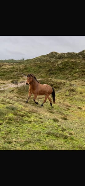 Kristó was born in Iceland in June 2007 and was imported to Denmark in 2014. With a height of 1.46 meters, he impresses with a truly good size. He is also strongly built with sturdy legs, making him very appealing to taller riders. Kristó is a bay with a medium temperament. He is very well schooled in tölt, from a calm pace to a high tempo. He also has a smooth, secure trot and a well-placed, uphill canter. Whether in the riding arena, on the oval track, or in the terrain, he handles everything with ease. He is equally confident riding in a group or alone in the field and is completely safe (including traffic-safe). He has also competed in some competitions in the past (including T3). Kristó is a true teacher in every respect. Unfortunately, Kristó has sweet itch, which is well managed with turnout at the seaside or with a blanket and causes no problems. Otherwise, he is completely healthy and has had no illnesses or injuries. We are looking for a calm, relaxed home where he has a fixed person and can spend the rest of his life as a luxury leisure horse and teacher. Of course, Kristó is regularly vaccinated, dewormed, and trimmed by the farrier. He is kept with us in a large mixed herd and is somewhat dominant, but never mean. He would love to live in an Icelandic society in a paddock system.
