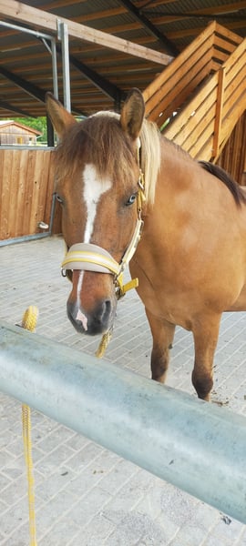 Brown Dun with Splash 4-gaited riding horse, passport registered, but never formally trained I am looking for a new owner for Skór. He is now 21 years old. Unfortunately, I can no longer do him justice, which is why I am offering him for sale. He is a very friendly horse towards people, capable of both a relaxed and a more energetic gait, and enjoys working and learning new things. In the past, he had issues in the terrain; he didn’t feel comfortable there and always wanted to go back home immediately. When he trusts his handler and is ridden with sensitivity and confidence, he now enjoys hacking out. He is comfortable riding alone or in a group, and in a group, he can be quite lively. Since I am looking for a confident rider with sufficient experience for him, he is not suitable as a beginner or children’s horse, at least for trail riding. Indoors, he has been ridden multiple times by beginners or even children without any problems. Overall, he is quite fearless and unshy. He has a pleasant tölt, which can be somewhat pacing at times, but finds rhythm once relaxed. He has an excellent walk, a very secure trot, and a beautiful canter, even from the walk and on circles. He is trained in shoulder-in at the walk and on short distances in the trot, as well as travers in walk, trot, and on short stretches in the canter. His training has been heavily influenced by Philippe Karl and elements of classical dressage. I have ridden him often with a combination of a bitless bridle and a snaffle (four-rein) or simply with a bit (two-rein). He also enjoys ground work exercises, including those from horsemanship, both in the arena and in the field. Skór has been barefoot for several years and handles it very well; he even moves better without shoes, which is why I wish for him to stay barefoot. His hooves are maintained approximately every 4-5 weeks by a hoof orthopedist. He has summer eczema, which is easily managed with a blanket and weekly application of ointment. He quickly gains weight if not enough exercise is provided, so he often needs a grazing muzzle on pasture. At a different stable, he developed allergic asthma. At his current stable, with a good location, haylage, and an open stable system, he is completely symptom-free and has no physical limitations. In the herd, he usually holds a middle rank, is relaxed, and rather unobtrusive. I am looking for a confident, empathetic person who enjoys versatile activities with a wonderful horse that has a lot to offer. He is not particularly fond of trailer rides, but will go if necessary. He is only available for off-grid stabling. The well-being of the horse and the right environment are more important to me than the price. A suitable saddle can be purchased along with him.