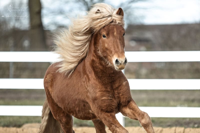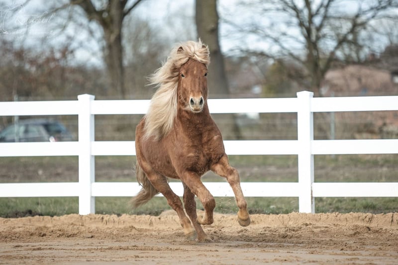 Beschreibung: Kobbi ist ein ausgeglichener im sportlichen Typ stehender 2-jähriger Wallach. Im Umgang ist er dem Menschen gegenüber sehr aufgeschlossen und freundlich. Seine ersten Bodenarbeits-Übungen hat er sehr kooperativ gemeistert. Aufgrund seiner sehr guten Eltern können wir uns Kobbi auch als späterer Sportpferd vorstellen. Ausbildungsstand: Kobbi ist noch roh, kennt aber schon das Halfter und die Hufpflege. Vater: Außergewöhnlicher Fünfgänger. 3-facher WM-Teilnehmer. Naddur vom Schluensee ist ein großer Fizo-Elite geprüfter Rapphengst, der seine hervorragende Qualität auch schon bei etlichen nationalen wie internationalen Meisterschaften bewiesen hat. 2015 und 2017 startete er auf der Weltmeisterschaft. Aber nicht nur er selbst ist hocherfolgreich im Sport unterwegs gewesen, auch seine Nachzucht kann sich schon mit Meisterehren schmücken (unter anderem die deutsche Meisterin im Töltpreis Náttrun vom Forstwald). Zudem verfügt Naddur über einen außerordentlich freundlichen Charakter, den er seinen Nachkommen mitgibt. Mutter: Kylja verfügt über viel Fluss und Energie. Sie präsentiert sich in allen Gängen taktklar und leichtfüßig, mit freier Vorhandbewegung. (FIZO-Noten: Tölt: 8.0, Galopp: 8.5, Schritt: 8.0, Trab: 7.0. Die Richter betonten ihren geschmeidigen Bewegungsablauf besonders im Galopp) Pflegezustand: Kerngesund, deutsch gezogen, ekzemfrei, aus ekzemfreien Elternlinien. Sonstiges: Neben Kobbi stehen bei uns auch noch viele weitere Pferde zum Verkauf. Kontaktiere uns gerne, um einen Kennenlerntermin zu vereinbaren, gemeinsam finden wir das richtige Pferd für Dich!