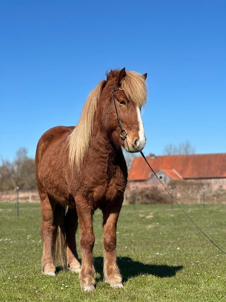 Ljúfur ist ein mittelgroßer, aber dabei sehr kräftig gebauter Wallach, der in Natura aufgrund seines guten Fundaments sehr stattlich wirkt. Er ist ein zugewandter, junger Wallach, der derzeit seine Grundausbildung bei uns absolviert und sich dabei positiv, motiviert und unkompliziert zeigt. Er lässt sich bereits auf großen Linien in Halle und Viereck reiten und geht mit einem Begleitpferd ins Gelände, wo er sich ebenfalls unerschrocken zeigt. Ljúfur zeigt sehr viel Tölt im Freilauf und unter dem Sattel im eher unteren Tempobereich und fängt aber auch seit kurzer Zeit an, unter dem Sattel bequem zu traben. Er hat eine sehr angenehme, ruhige und etwas gelaufende Galoppade, was ihn zu einem sehr bequemen Freizeitpartner macht. Dabei hat er ein mittleres Temperament. Er verspricht durch seine Eigenschaften ein zuverlässiger Freizeitpartner für viele bequeme Ausritte und natürlich auch etwas Platzarbeit zu werden. Ljúfur kann bei uns zur weiteren Ausbildung bleiben, aber auch jederzeit in sein neues Zuhause umziehen. Er ist deutsch gezogen, geimpft, regelmäßig entwurmt, steht im Herdenverband in Offenstallhaltung un es sind weder Allergien noch Krankheiten bekannt. Er wird im Auftrag von privat verkauft.