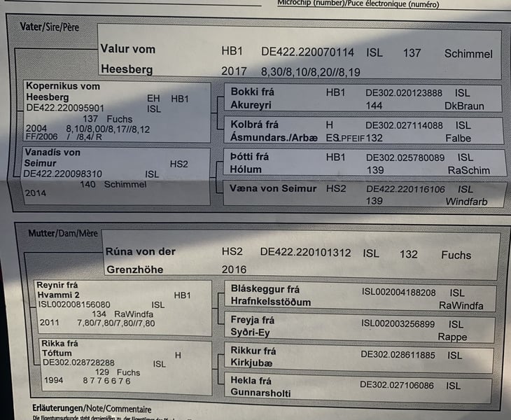 Vörour von der Grenzhöhe is an absolute eye-catcher! With his beautiful mane and pronounced stallion type, this 5-year-old gelding draws all attention. But he impresses not only visually – Vörour is also a real charmer in character. He is very attentive and friendly towards people, always gentle and calm. During grooming, he is consistently patient and kind, greeting everyone with a positive demeanor. Vörour has a strong foundation and, at 1.41 meters, is a striking presence. He is healthy, free of eczema, regularly dewormed, and his hooves are well-maintained. He was raised in a well-socialized mixed-age young horse herd. He demonstrates all gaits, with his ground-covering and rhythmically secure walk and trot standing out in particular. In the free movement, he also regularly shows Tölt and Pass with good tempo, rhythm, and elegant movement. Vörour has everything needed to become an ideal all-round riding horse for the whole family with proper training – or to shine in competitive riding with further training. He has recently been backed and is still in a rough state. Starting his training can be arranged upon request, with costs covered. I am happy to provide further information by phone.