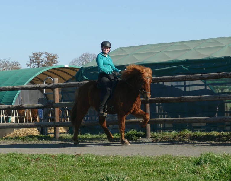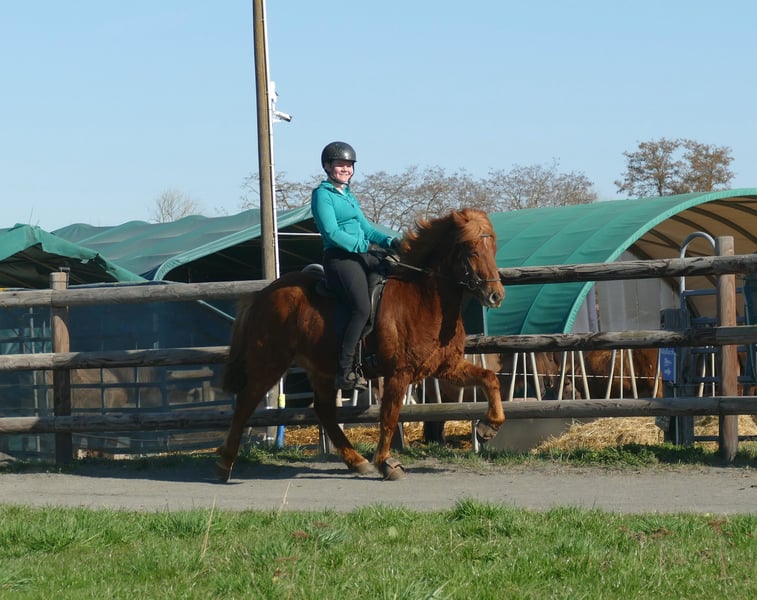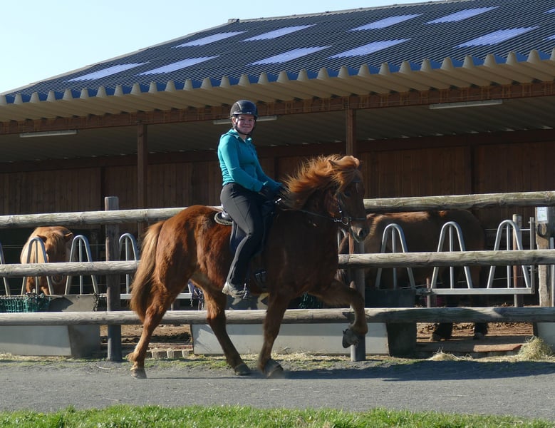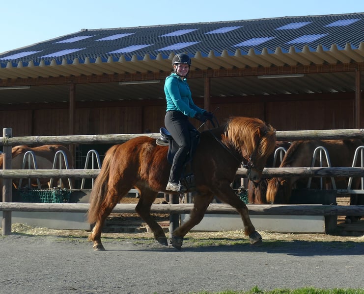 Rubin – a wonderful Icelandic horse for further training 😊 Rubin has recently begun his training as a riding horse and is showing himself to be brave, eager to learn, and reliable! He displays a good amount of trot and tölt and is currently classified as a four-gaited horse. He has a smooth, expressive trot that already responds well to the rein. His tölt is relaxed, elastic, and it is evident that he will develop excellent gait quality. This young gelding is very affectionate and brings real joy to daily work: the perfect combination of lively willingness to work and patient learning. He is well-behaved at the blacksmith, is familiar with dogs, tractors, and all the hustle and bustle at the pony farm. Rubin is at the beginning of his journey as a riding horse, and we are absolutely confident that he will become a versatile all-rounder with a dream character...(and he already is!) Therefore, he is currently suitable for an experienced rider. However, as he is still in training, this may change.